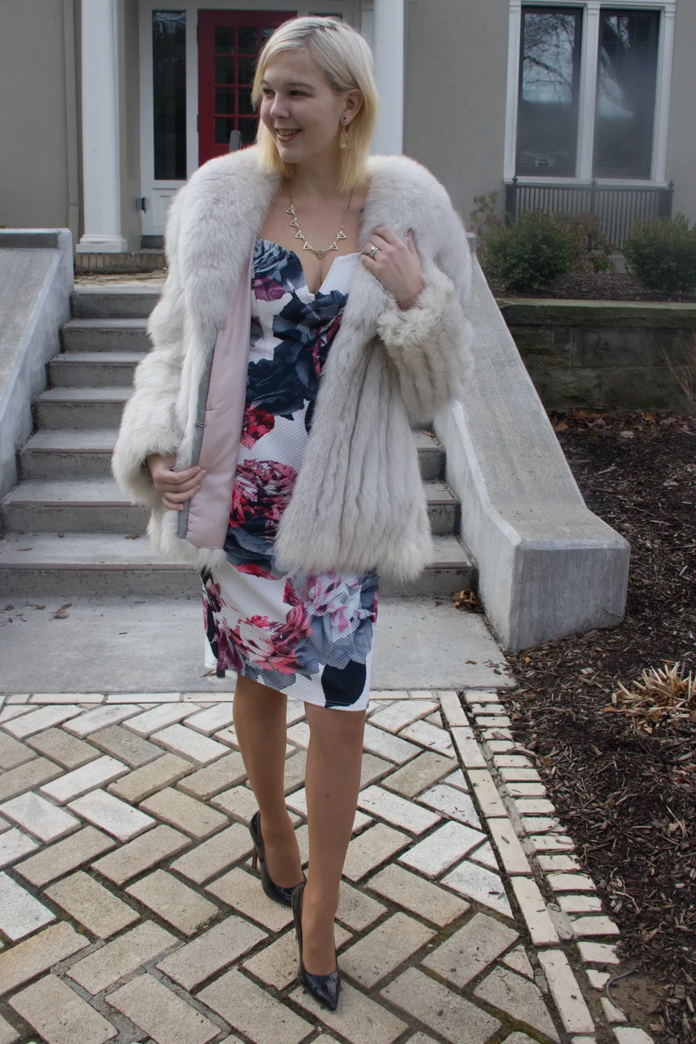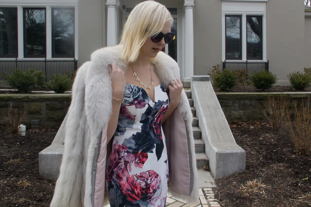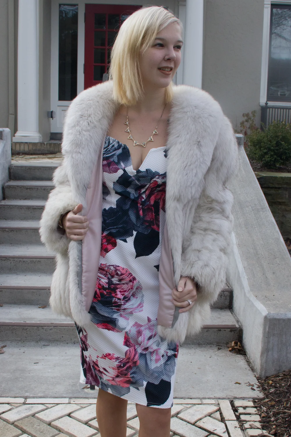 Since my mum and I decided to take a step out of our comfort zone and try somewhere different for our weekly Sunday brunch, I decided this was a great opportunity to step out in style and show off some of my favorite old and new pieces. The new being this floral dress from Make Me Chic, and the old being one of my grandmother's gorgeous silver fur coats that she had left me after she passed away. I also can't forget to mention that to complete this look I styled some of my favorite Rocksbox pieces along with my trusty Louboutin pumps that I purchased from Tradesy.