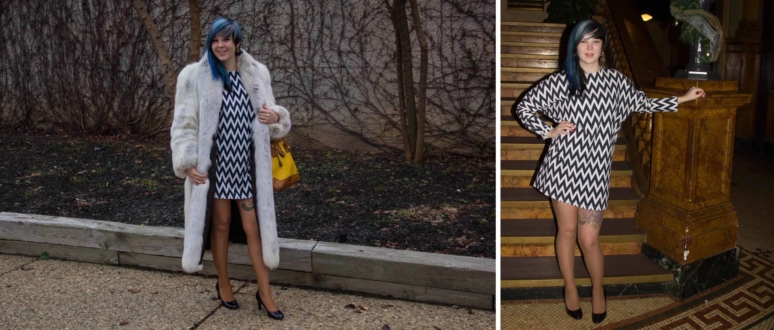Now, I have to admit that this coat was the perfect choice to pair with my little shift dress while taking on the cold, for a night of gallivanting around down town!