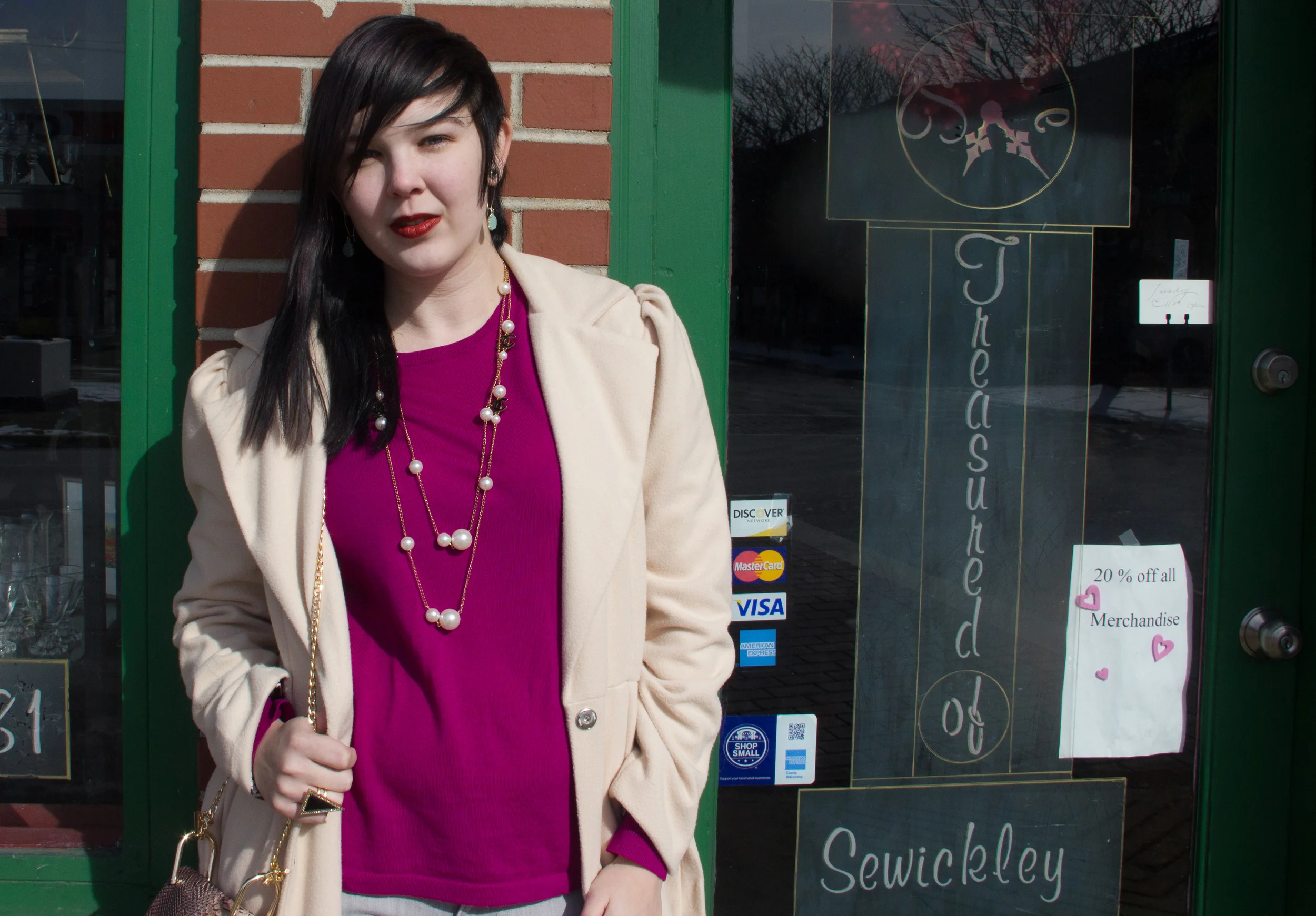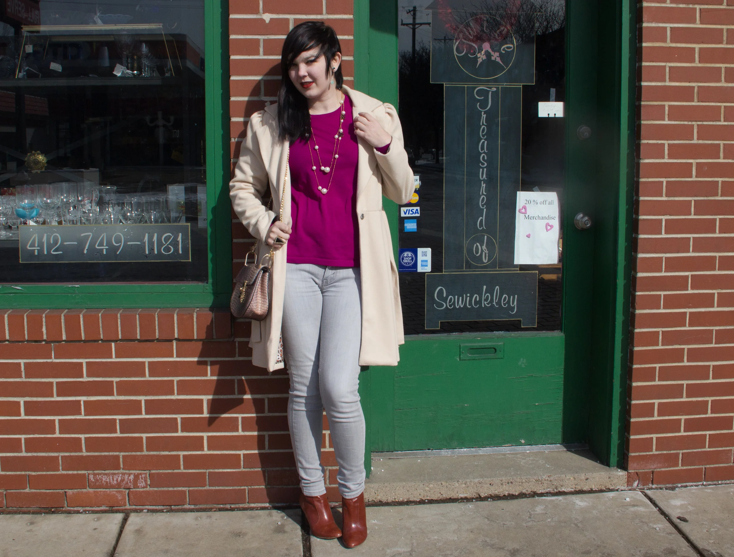 BURRRR! That is all I have to say about the weather here in Pittsburgh lately! I really can't help but wonder where was all this cold, white, fluffy stuff at Christmas time when it's acceptable?? However I have came to accept that my prediction from December has come true, and our beautiful Indian Summer is in fact over, and winter is now in full swing. But I'm going to try and remain positive about it. Because even though I'm freezing here in the Iceburgh, at least I get to tackle styling for the most difficult season of all, and I have my fabulous coat, from my sponsor SheIn, to help me stay toasty warm. Bring on the layers, this will be fun!