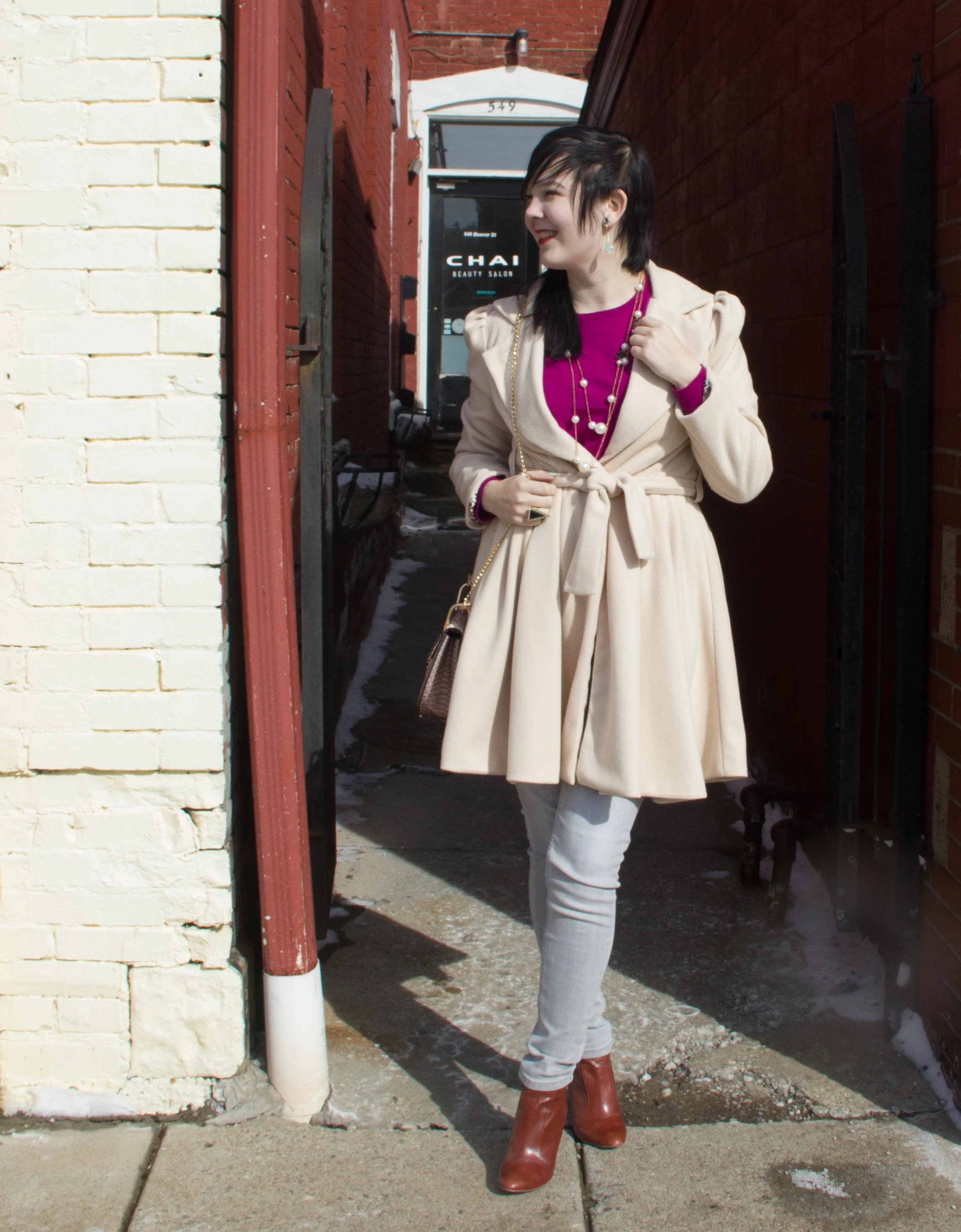 Let's just say this beige coat is far from boring. The reason I was so drawn too it (I'm sure you recognize it from my last Wish-list Wednesday post!) is because of it's darling little belt that fastens perfectly into a bow or square knot (as pictured), as well as it's fit and flare cut. Even though I do tend to lean more towards an edgy look, I just needed this super sweet and girly coat in my closet!